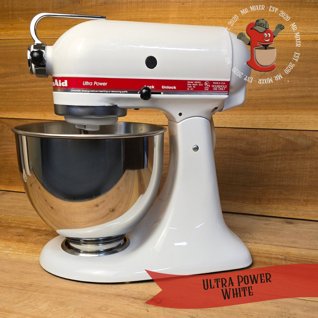 Mr. Mixer Upgraded KitchenAid Ultra Power (KSM90PSWH) 4.5 Quart White with Coated Attachments #102